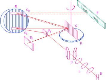 凹面光柵既具有色散作用也起聚焦作用(凹面反射鏡將色散后的光聚焦)。